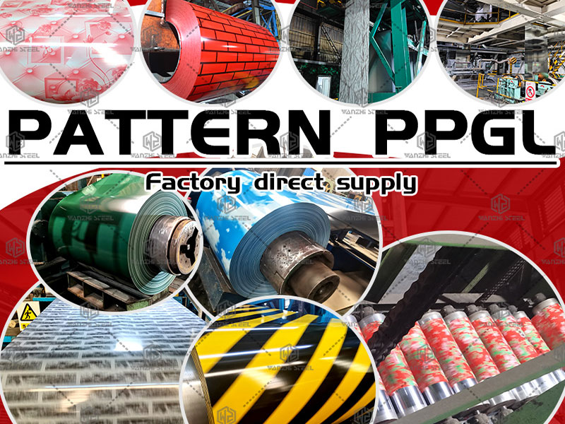 Beyond solid-color PPGI, Wanzhi PPGI coils can also feature decorative patterns including wood grain, stone texture, camouflage, floral, sky, stripes, marble, trees, and grass to enhance aesthetics. (Customization available based on samples.)