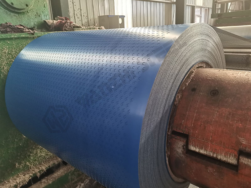 Embossed steel is a steel sheet made of different materials (galvanized steel, painted steel, alloy steel, etc.) that is embossed or rolled at elevated or ambient temperatures to create dots, stripes, geometric patterns, or textures of metal or leather on its surface.