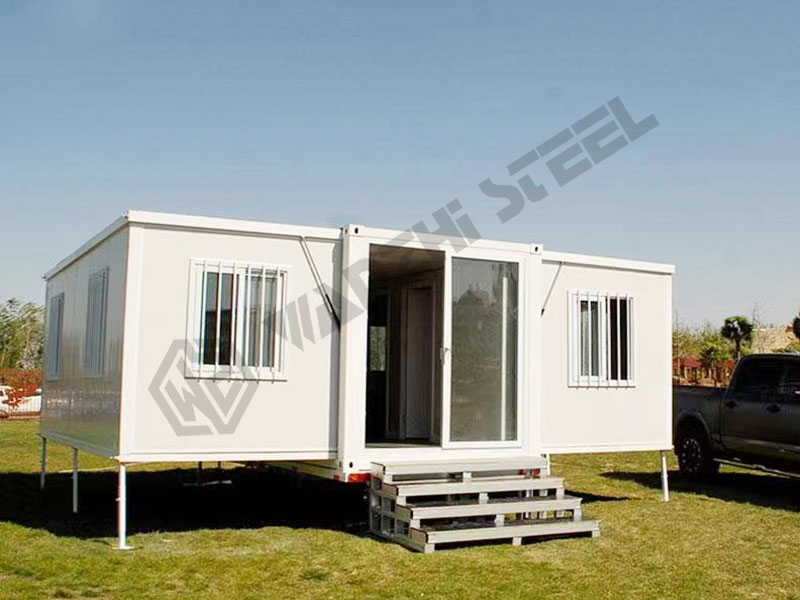 Prefabricated steel houses are composed of galvanized frames, color-coated sandwich wall panels, color-coated roof panels, bamboo plywood flooring, galvanized/aluminum alloy/stainless steel doors and windows, electrical systems, and accessories. House dimensions typically range from 20 to 40 feet. Wanzhi Group offers various forms of prefabricated houses, including double-wing extensions, folding designs, and single-side extensions.